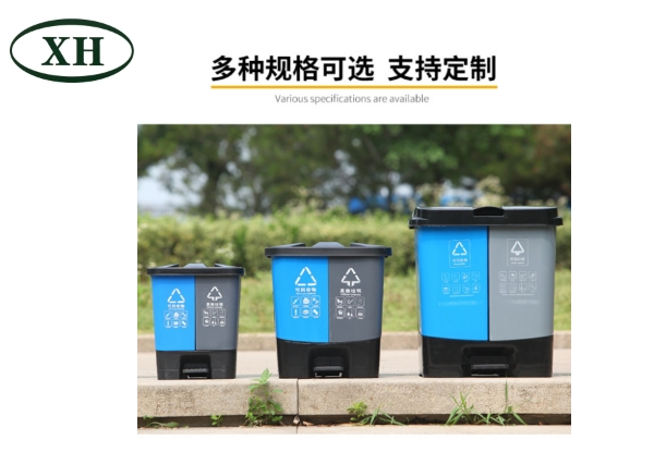 1、腳踏分類垃圾桶是由兩個不同顏色、垃圾要求的桶和腳踏式桶座構(gòu)成。
